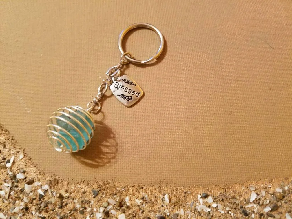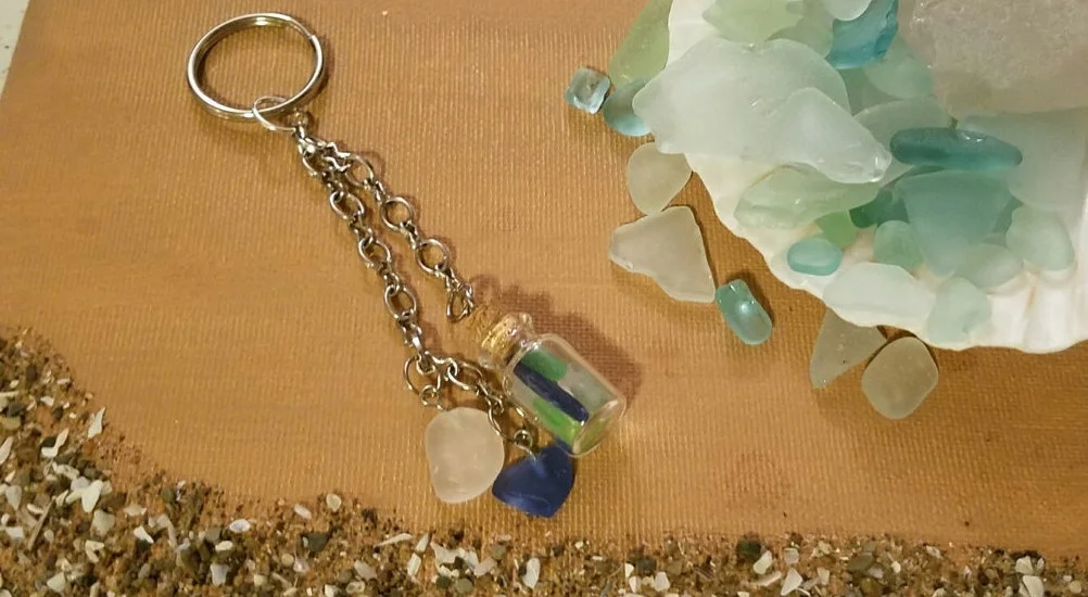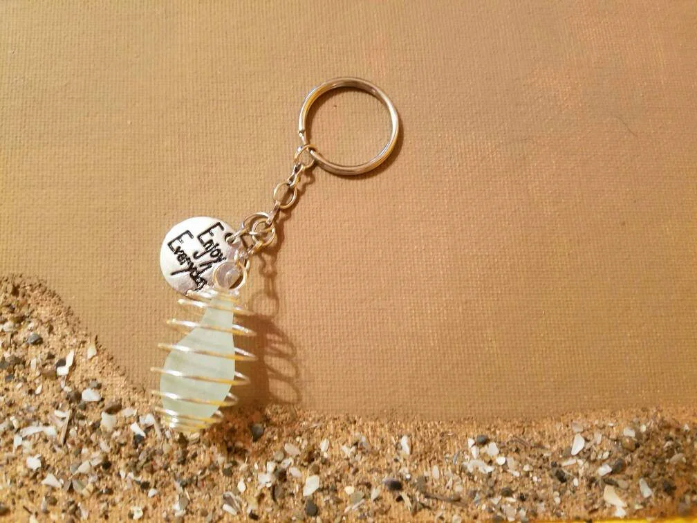 Great Lakes beach glass necklace with lots of fun swirls and curls in addition to the key charm