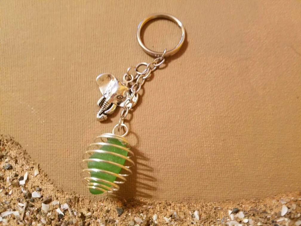 Great lakes beach glass silvertone necklace with beads and an elephant charm